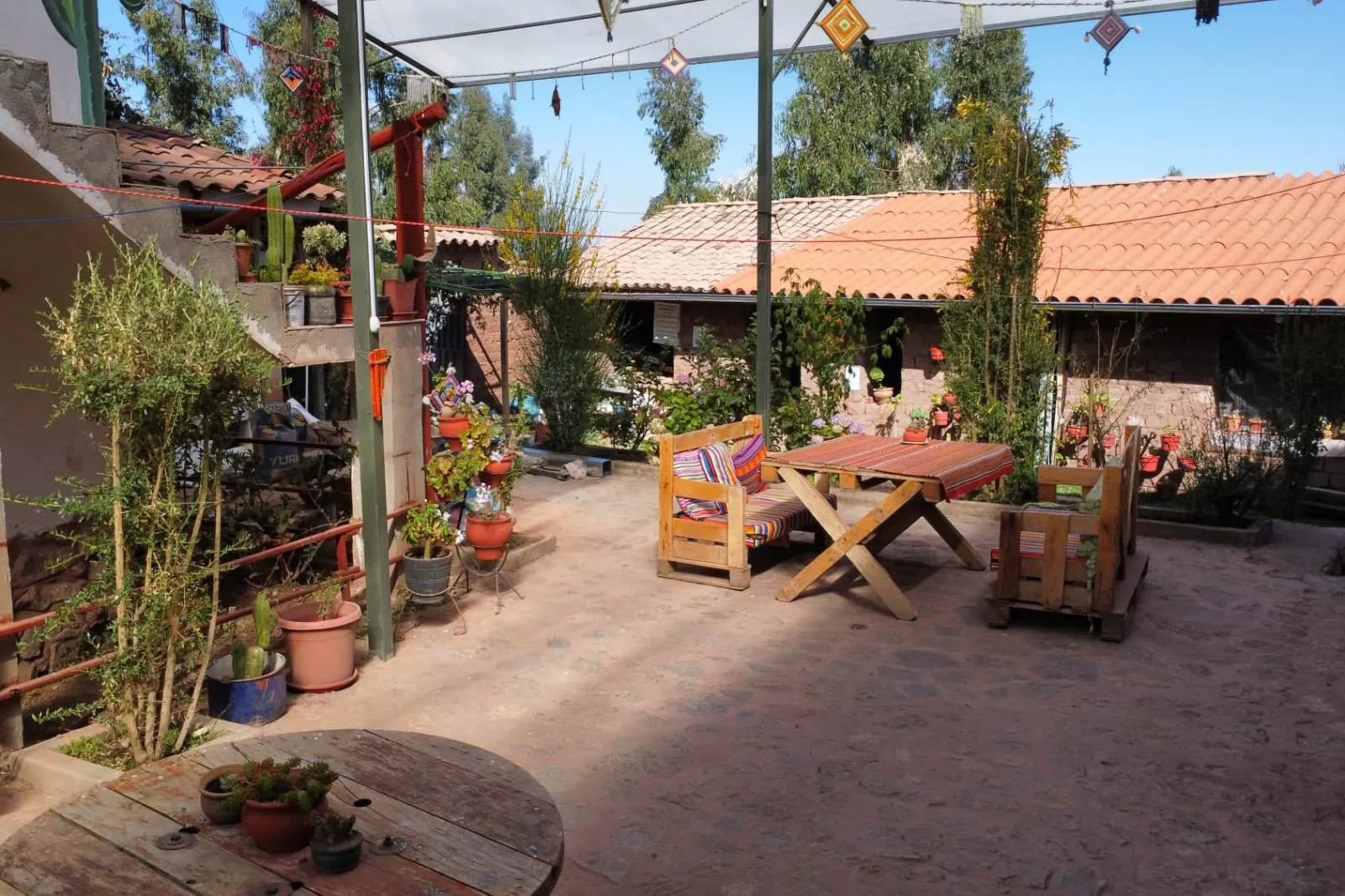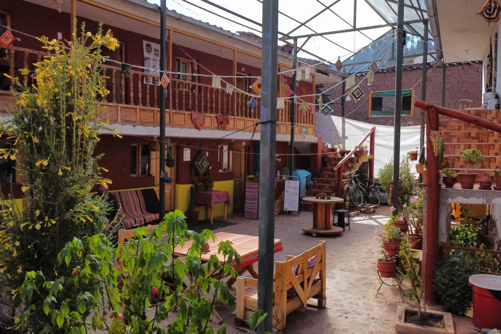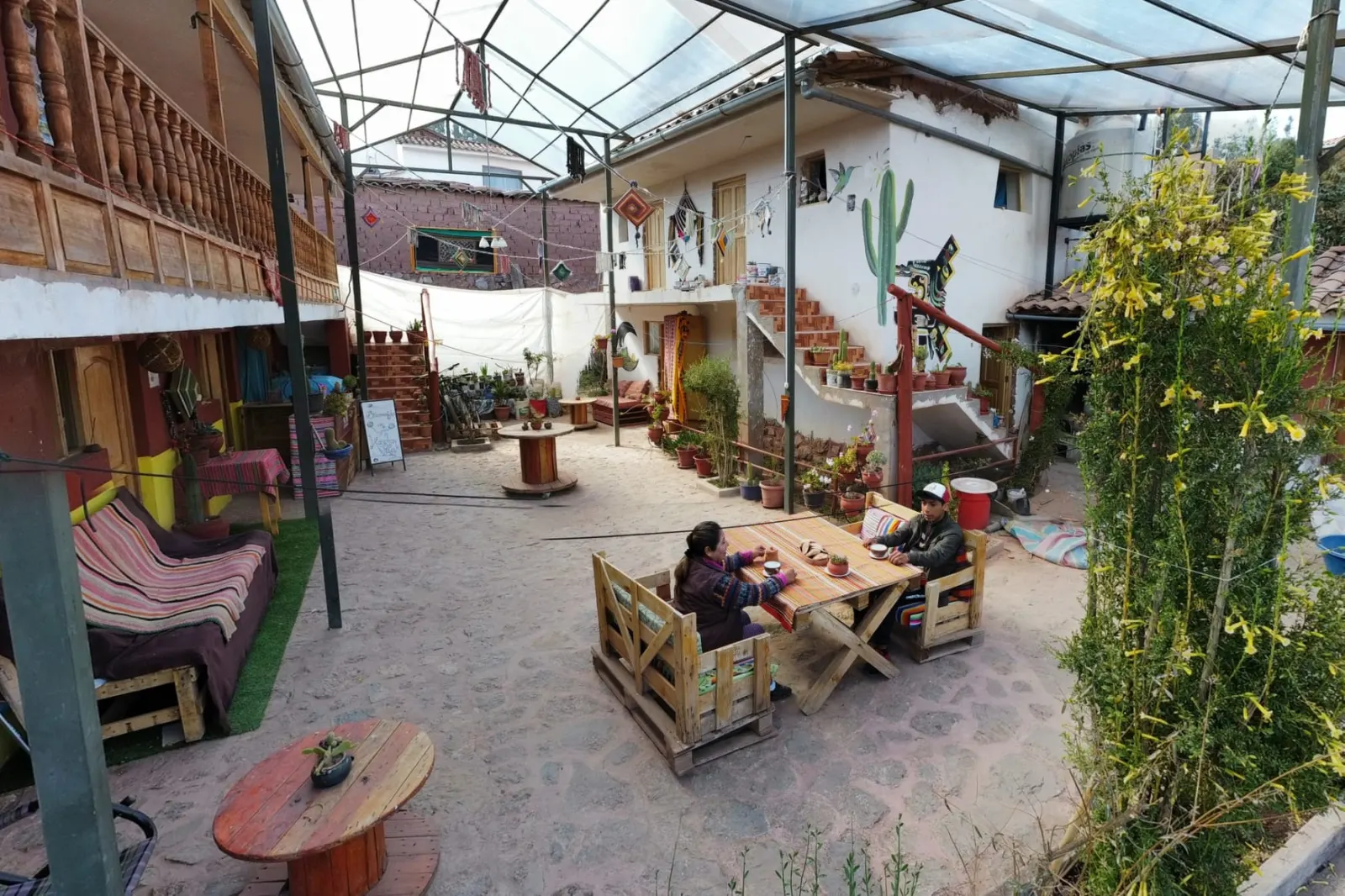 Patio con sol, cocina compartida y espacios para leer o conversar. Aquí se crean amistades y proyectos con propósito. Si vienes en grupo, pregúntanos por nuestros espacios para voluntariado.